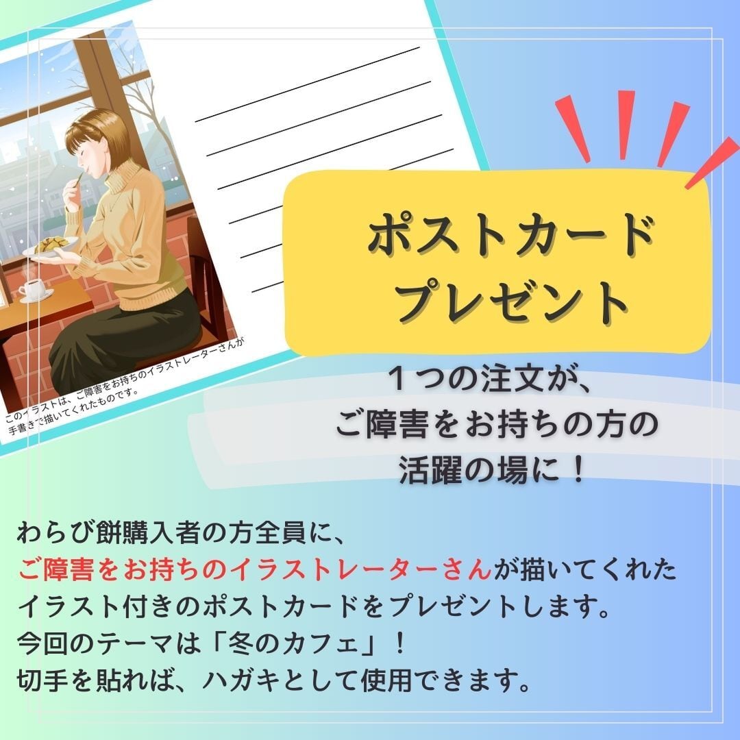 あなたに届くわらび餅が、将来、障害者の活躍へと繋がります。