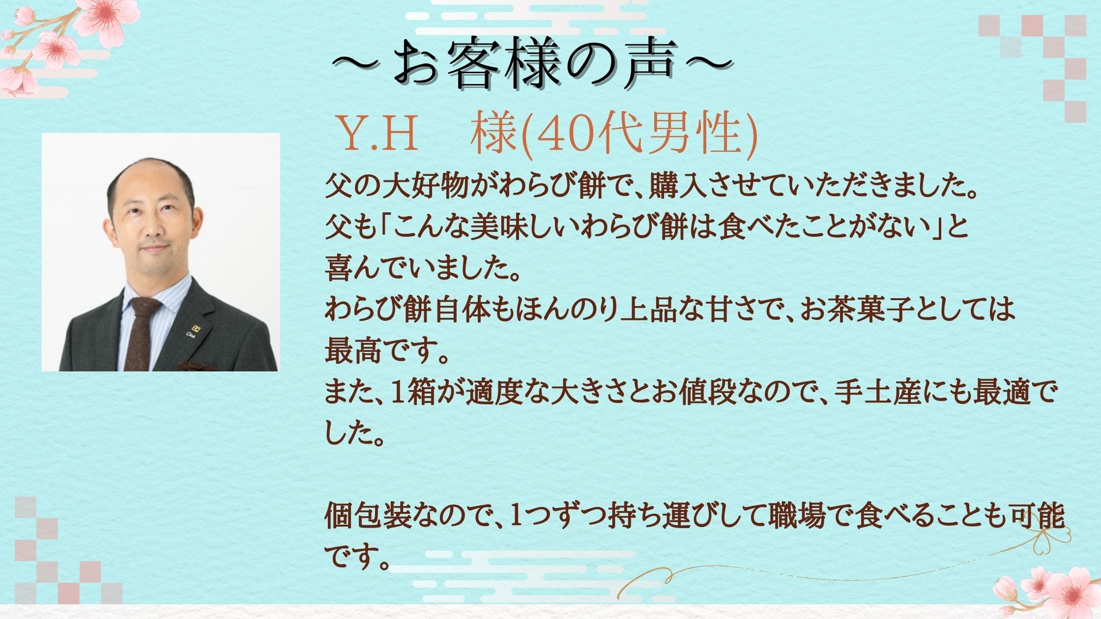 わらび餅を通して優しさの輪を広げたい。