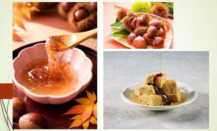 個包装わらび餅3つ(約180g)に、濃旨マロン蜜1袋を同梱した濃旨マロンわらび餅。