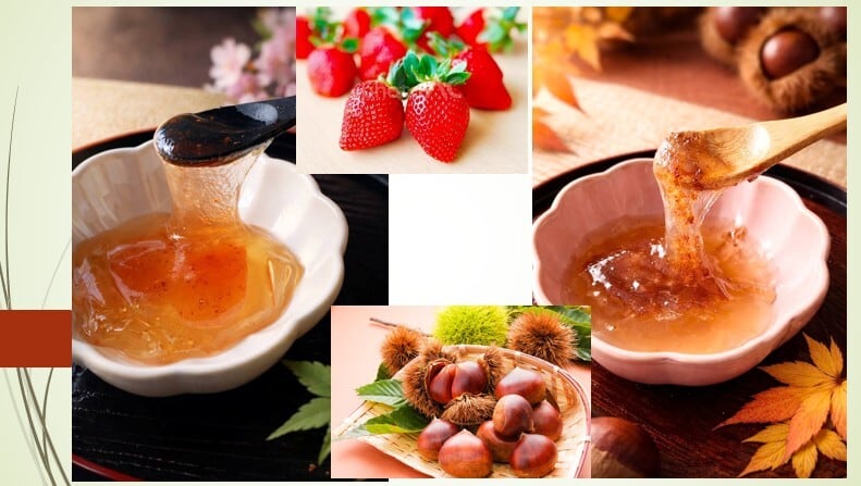 個包装わらび餅3つ(約180g)に、濃旨マロン蜜1袋を同梱した濃旨マロンわらび餅。
